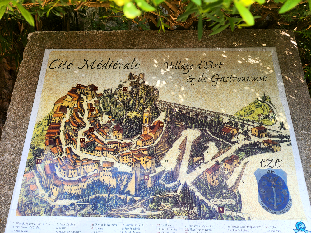 EZE średniowieczne miasteczko zbudowane ponad 400 metrów nad poziomem morza. I dzięki temu roztacza się z niego baśniowy widok na lazurowe wybrzeże. Jest odwiedzane najchętniej przez turystów z uwagi na przepiękne widoki z góry. Średniowieczne miasteczko jest atrakcją i zabytkiem. Każdy budynek ma swoją historię. Można tu również spotkać wiele małych sklepików, restauracji, galerii i warsztaty lokalnych rzemieślników. Jednym z zabytków jest kościół Notre Dame z XVIII wieku, drugi to trasa wędrowców tak zwana ” Ścieżka Nietzschego” , ponadto ogrody egzotyczne.