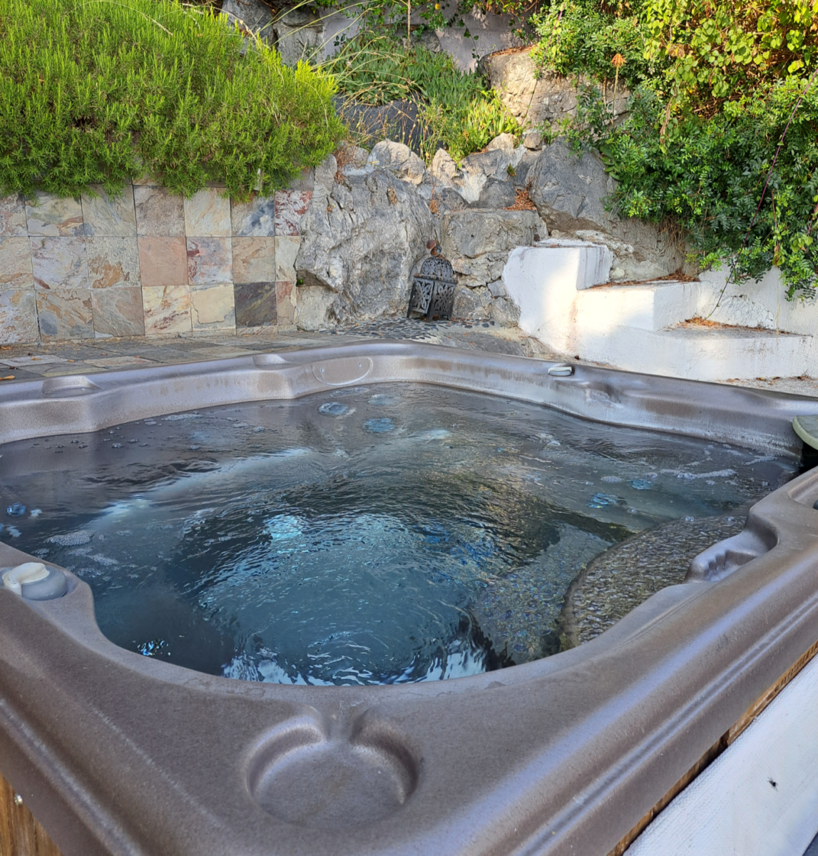 Nasz apartamennt położony był na wzgórzu , ażeby dostać się niego zmuszona byłam pokonać 60 stopni w jedną stronę. Rozmieszczony był na trzech poziomach. Dwie sypialnie , pokój gościnny , kuchnia na poziomie pierwszym. Na drugim dodatkowa sypialnia bar z aneksem kuchennym , sanitariaty i olbrzymi taras z przepięknym widokiem. Na trzecim poziomie taras, jakuzi oraz tereny zieleni przylegające do kamiennej górzystej sciany.